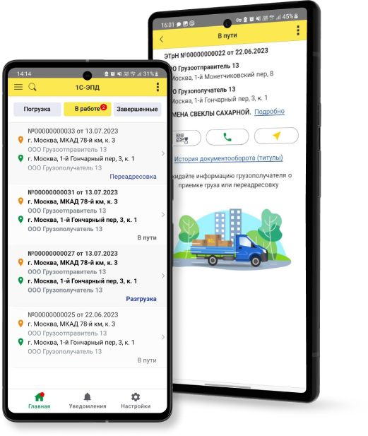 Мобильное приложение от фирмы «1С» предназначено для работы с электронными перевозочными документами.